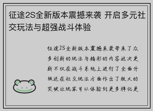 《无主之地2》是一款深受玩家喜爱的射击类角色扮演游戏,自发布以来,凭借其独特的画风、丰富的剧情和多样的游戏玩法吸引了无数玩家的关注。随着游戏内容的不断更新,新的DLC也成为了玩家探索游戏世界的重要组成部分。近日,《无主之地2》推出了一款全新的DLC——《荒原新篇章与深度挑战揭秘》,为游戏带来了更多的...